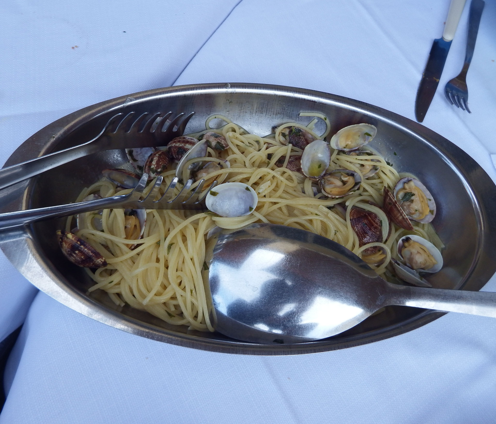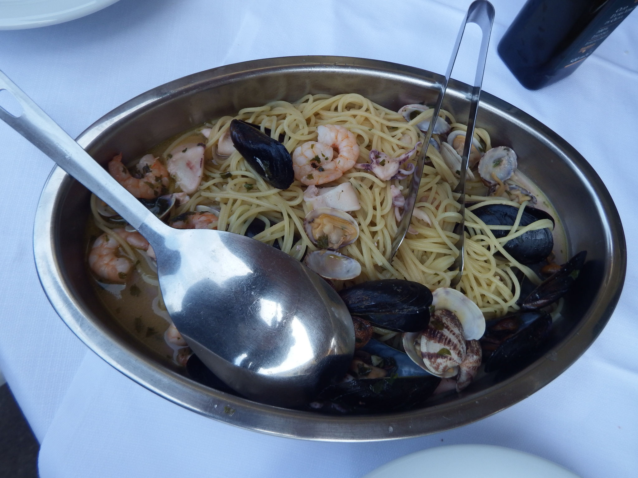 Specialità di pesce e non come: cozze e vongole veraci marinate, polpette di pesce, totani ripieni e panzanelle con affettati.